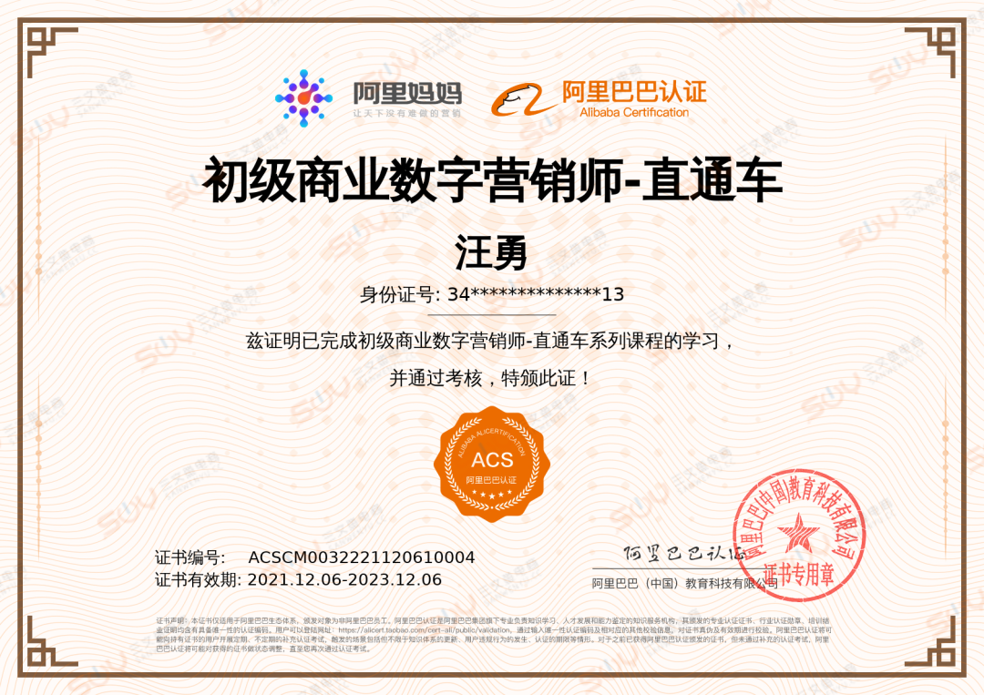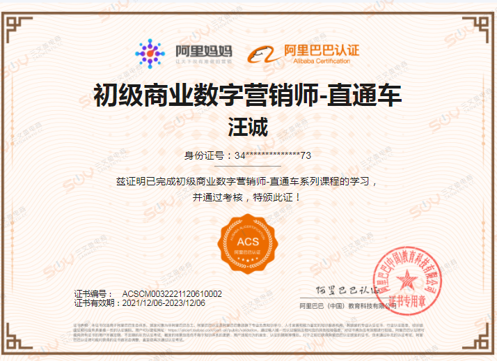 生意参谋、超级推荐、直通车、营销活动等操盘是电商运营人才的重点基础能力之一,三文鱼电商组织运营人员学习增长相关知识并达到专业要求,让一批又又一批运营人才取得阿里妈妈商业数字营销职业认证证书,精益求精,逐步实现团队的专业化及精英化。